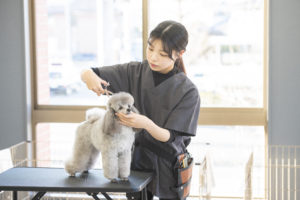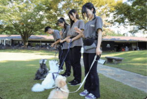 【来校型】毎回違う種類の学校犬と触れ合ったりグルーミングできたりするので、入学後の実際の授業のイメージがしやすかったです。先生や先輩の方々の雰囲気がとても良く、前回に引き続き楽しく体験することができました。(Kさん)