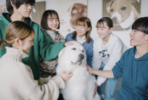 【来校型】毎回違う種類の学校犬と触れ合ったりグルーミングできたりするので、入学後の実際の授業のイメージがしやすかったです。先生や先輩の方々の雰囲気がとても良く、前回に引き続き楽しく体験することができました。(Kさん)