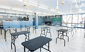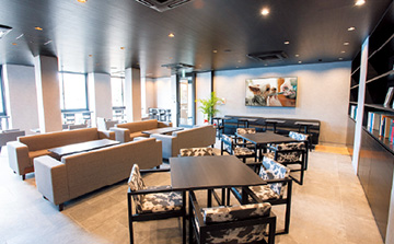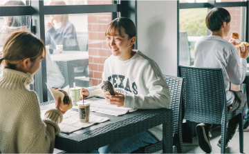 1階は学生のフリースペースとなり、友達とランチを楽しんだり、図書スペースもあるので放課後に勉強したりすることもできます。