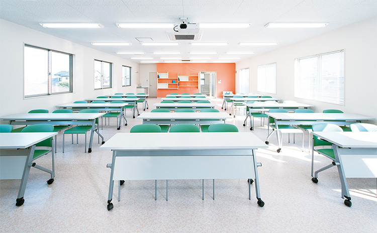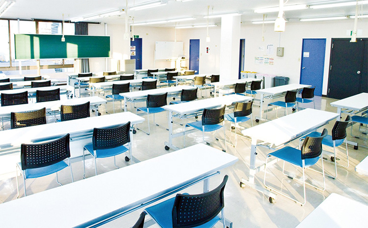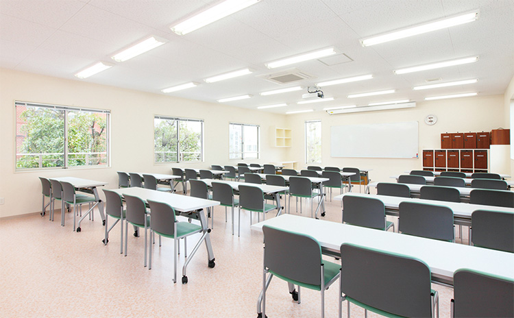 各フロアにロッカールームや更衣室などを完備。2階は総合教室、3階は看護教室・実習室として学習のための快適な環境が整っています。