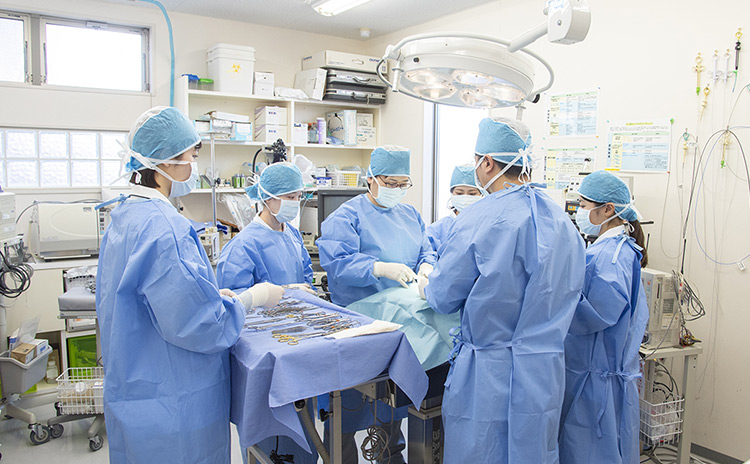群馬県獣医師会有志とのパートナーシップにより実現し、昼間は学生の実習施設としても活用しています。最新の医療設備が整備されているので、愛玩動物看護師を目指す学生にとってハイレベルな動物医療を学べる最高の実習場所となります。 キャンパス敷地内に立地するメリットを最大限に活かし、即戦力となる愛玩動物看護師の育成を目指します。