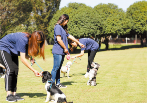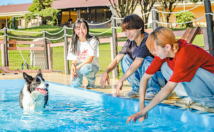 在学中から世界の名犬牧場での接客や飼育管理を通して、現場で働きながら人とのコミュニケーション能力とペットに対する実践的なスキルを身につけます。