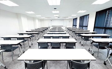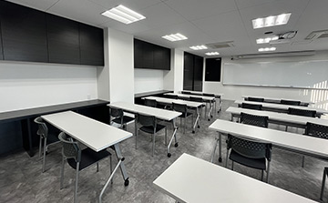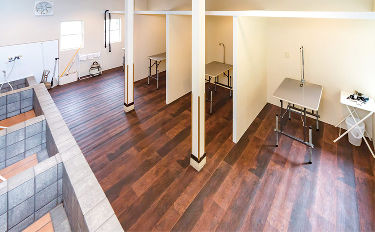 講義や実習を行う本校舎はモダンでおしゃれな外観で、学習環境としても集中して授業が受けられるキャンパスです。自然光が良く入り明るい講義室では座学を行い、清潔に保たれた実習室では、毎日名犬キャンパスからモデル犬を迎え、様々な犬種のグルーミングを行うことができます。