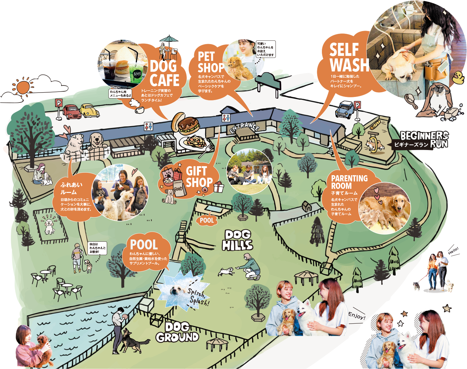 世界の名犬牧場は、犬と人の絆を深め、人と人が楽しく交流し、犬と犬の社会化を学ぶことのできる、ドッグ・コミュニティパークです。