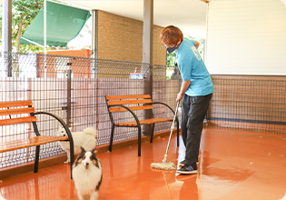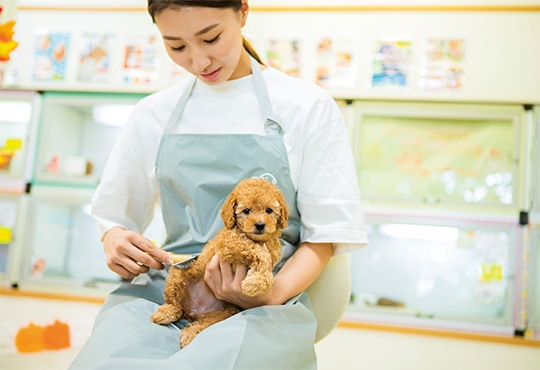 本校の校外キャンパスである世界の名犬牧場。実際の接客や生体管理を通して、現場に必要なコミュニケーション能力や実践的なスキルを働きながら学ぶことができます。