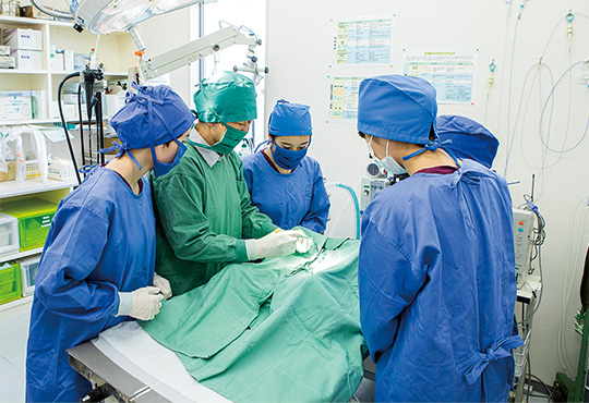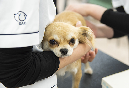 キャンパス敷地内に立地する「群馬夜間救急動物病院」を中心とした動物医療の実践授業は、本校が誇る特出した実習カリキュラムとなります。病気やケガをした動物の看護に必要な基礎知識だけでなく、獣医師の診療補助や医療器具の操作方法、検査方法など、動物医療の現場で求められる最新の臨床技術も習得します。実際の仕事で欠かせない柔軟な思考力や応用力を養い、「愛玩動物看護師国家資格試験」の合格を目指します。