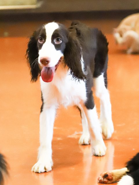 コッカーたちと同様水入れに耳が入ってしまうのはご愛敬…遊んでもらうまで人の後を追いかけてきます(笑)