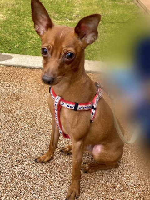 とにかく元気でお散歩大好き!落ち着くと抱っこをしてほしくてアピール
