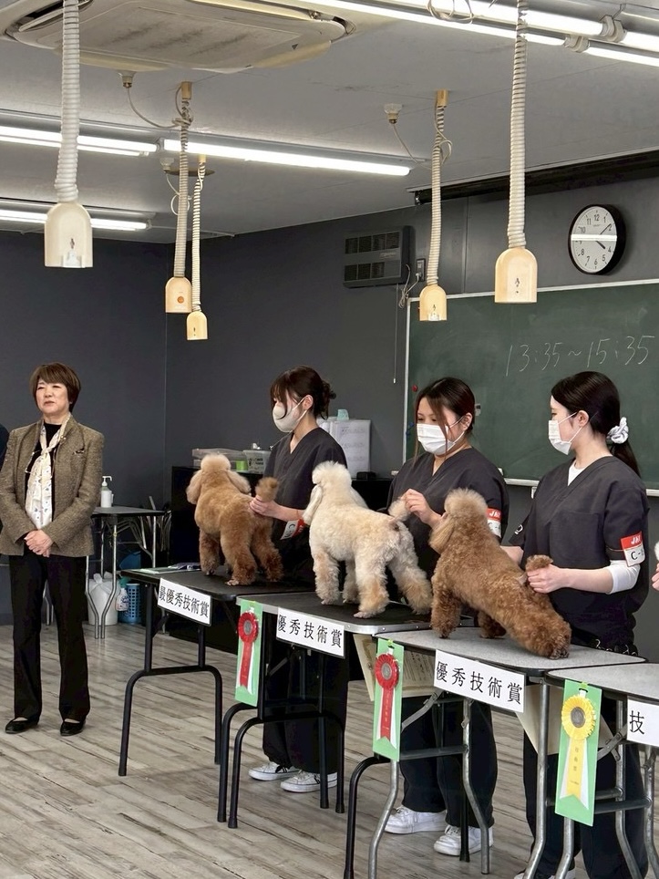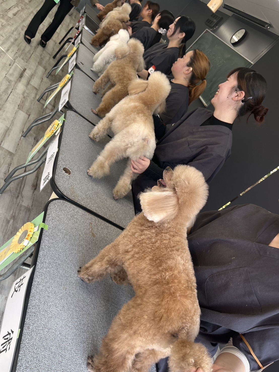 先日、1年動物総合学科の学生対象の『JKC公認トリマーライセンスC級試験』が行われました‼️初めての試験…緊張したかと思いますが各々がとても頑張っていました✨1年間で素晴らしい成長を見せてくれた1年生。新年度からは希望のコースに分かれての進学となりますが、また新しいステージでの成長が楽しみです😌