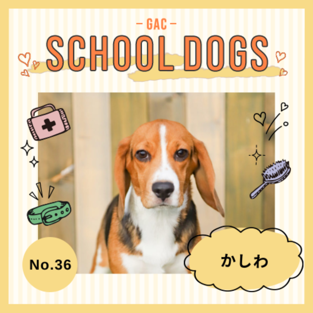 第36回目は・・・ビーグルのかしわちゃん。ビーグルハウンドの中で最も小さい犬である。この系統の犬種はきわめて古い歴史をもち、紀元前からギリシアでウサギ狩りに用いられていたハウンドの後裔と思われます。