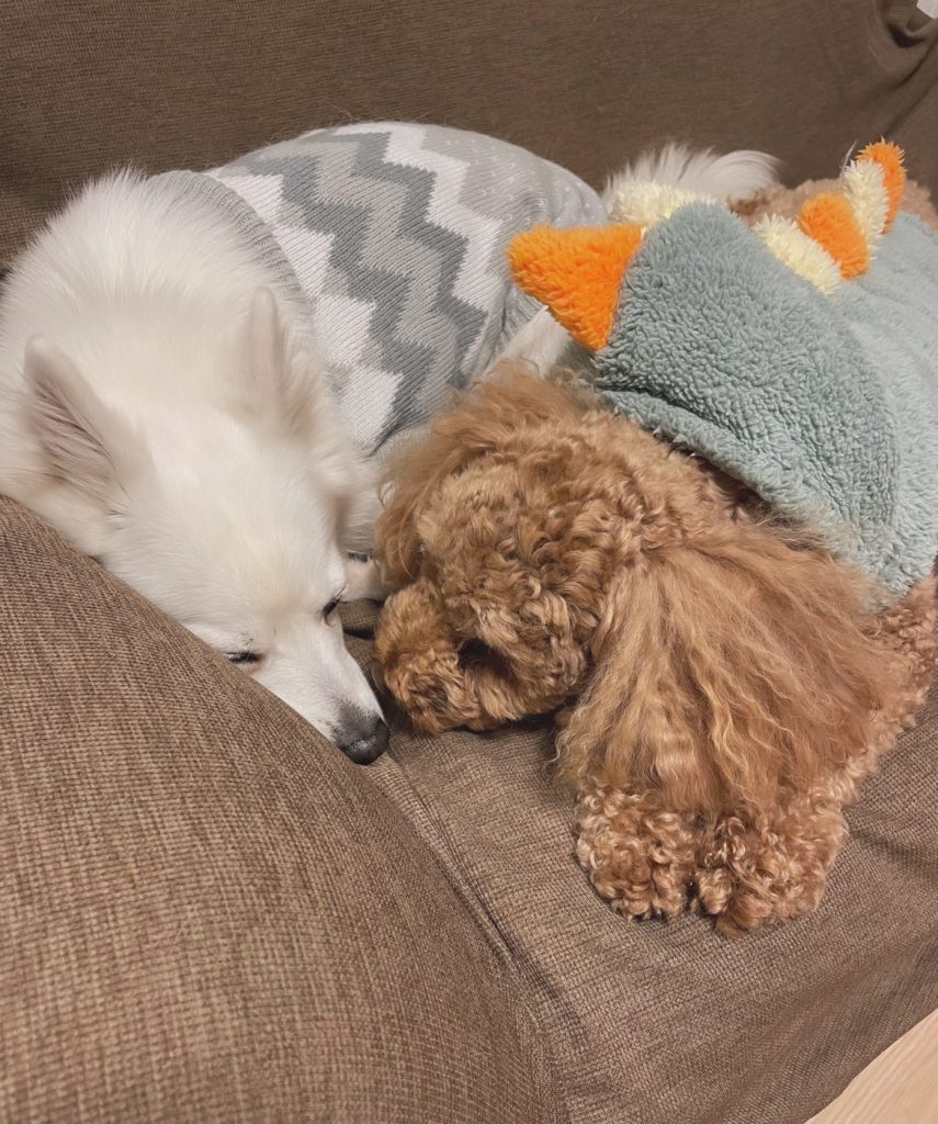今回その様子を送ってくれました!先住犬と一緒に仲良く過ごしているのが印象的です♪