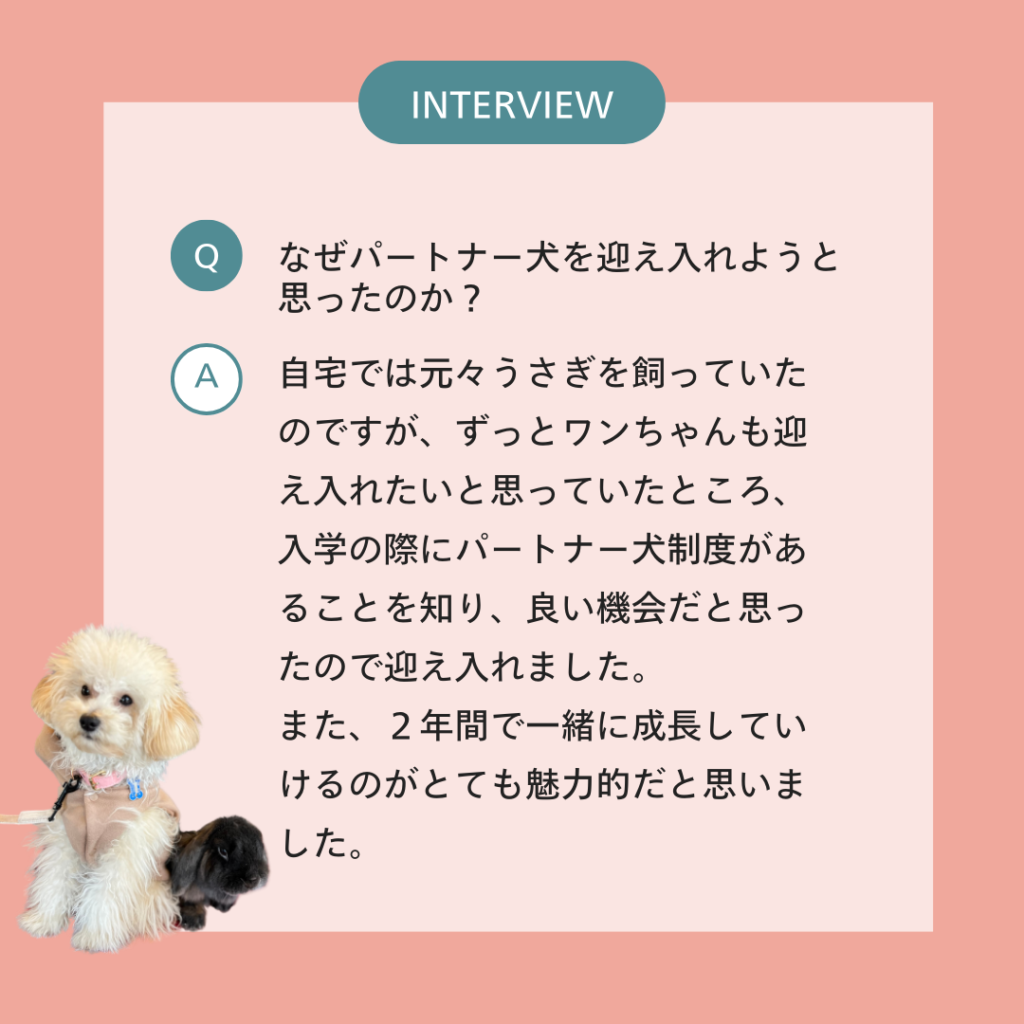 パートナー犬制度を利用している学生にインタビューをしました✨
