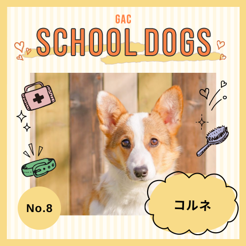 第8回目は・・・ウェルシュ・コーギー・ペンブロークのコルネちゃん。ウェルシュ・コーギー・ペンブロークは地低く、力強く、たくましい体つきが特徴です。体高は約 25-30cm体重は9-12kg